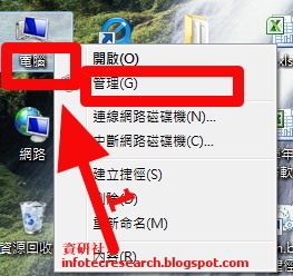 2. 欲移除或停止工作管理员中不必要的“服务”,可至服务关闭不必要启动的应用程式服务.2.1点选 [电脑] 按右键 选 [管理]] 的最下方bar的部份,按滑鼠右键选择[启动工作管理员]==>[服务] 来看有哪些服务正在启动。